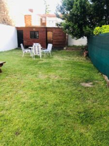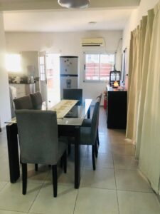 Casa en dos plantas:Planta baja: Living-comedor con cocina incorporada, baño, cochera pasante para dos autos. Jardín en el frente y jardín atrás, parrillero y dos depósitos