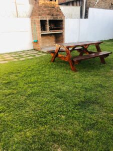Planta alta: tres dormitorios (dos con placares completos y otro dormitorio pequeño sin placar), balcón terraza desde los dormitorios al jardín. Baño completo.
